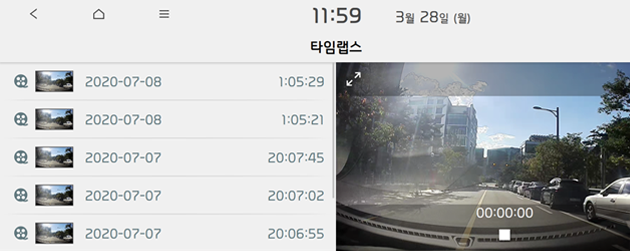 - 주행 중에도 빌트인 캠 메뉴를 사용할 수 있도록 변경하여 사용성이 향상되었습니다. 단, 주행 중에는 안전을 위하여 영상 재생 및 휴대폰 연결 기능은 제한되고 있습니다